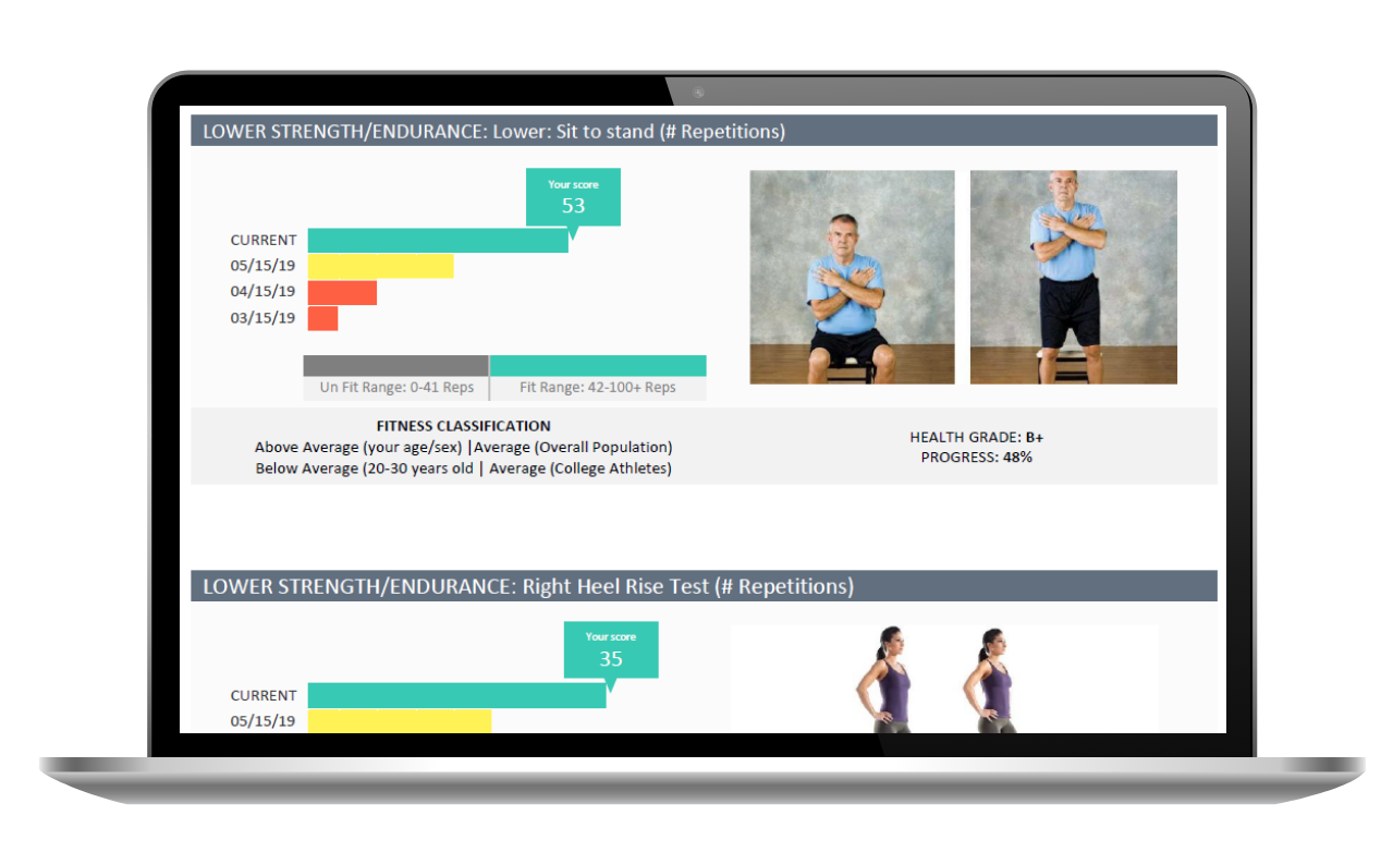 Functional fitness testing evaluates an individual’s fitness level based on age and gender-related norms and also identifies key risk areas that can lead to injury.