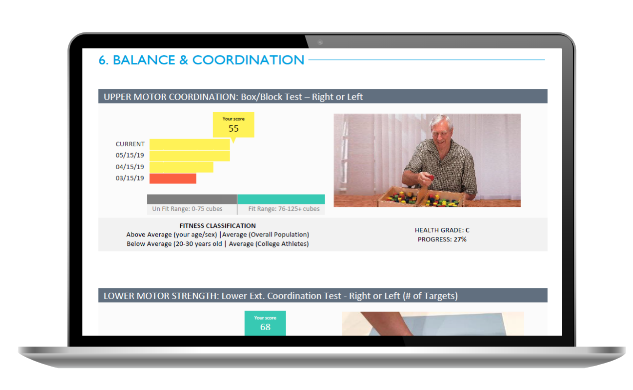 The FFT can track an individual’s progress over time, allowing individuals to monitor and evaluate their lifestyle habits such as diet, exercise, stress management, and sleep patterns on a continual basis. Functional fitness testing can be offered to any individual between the ages of 18 and 94, and can help businesses gain loyal clients who will come back to your clinic for regular testing.