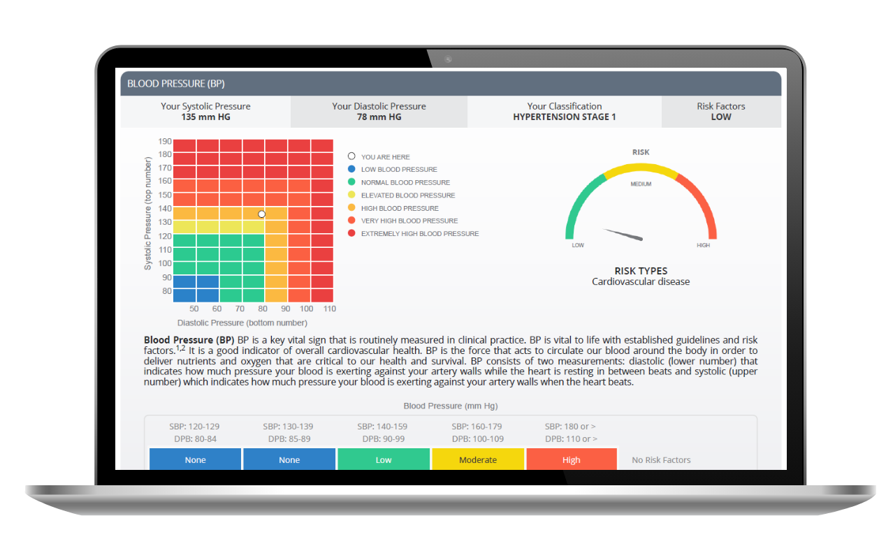 The key to any health-related assessment is tracking progress over time. Our HRA software allows for easy tracking of an individual’s health by providing an overall health score.