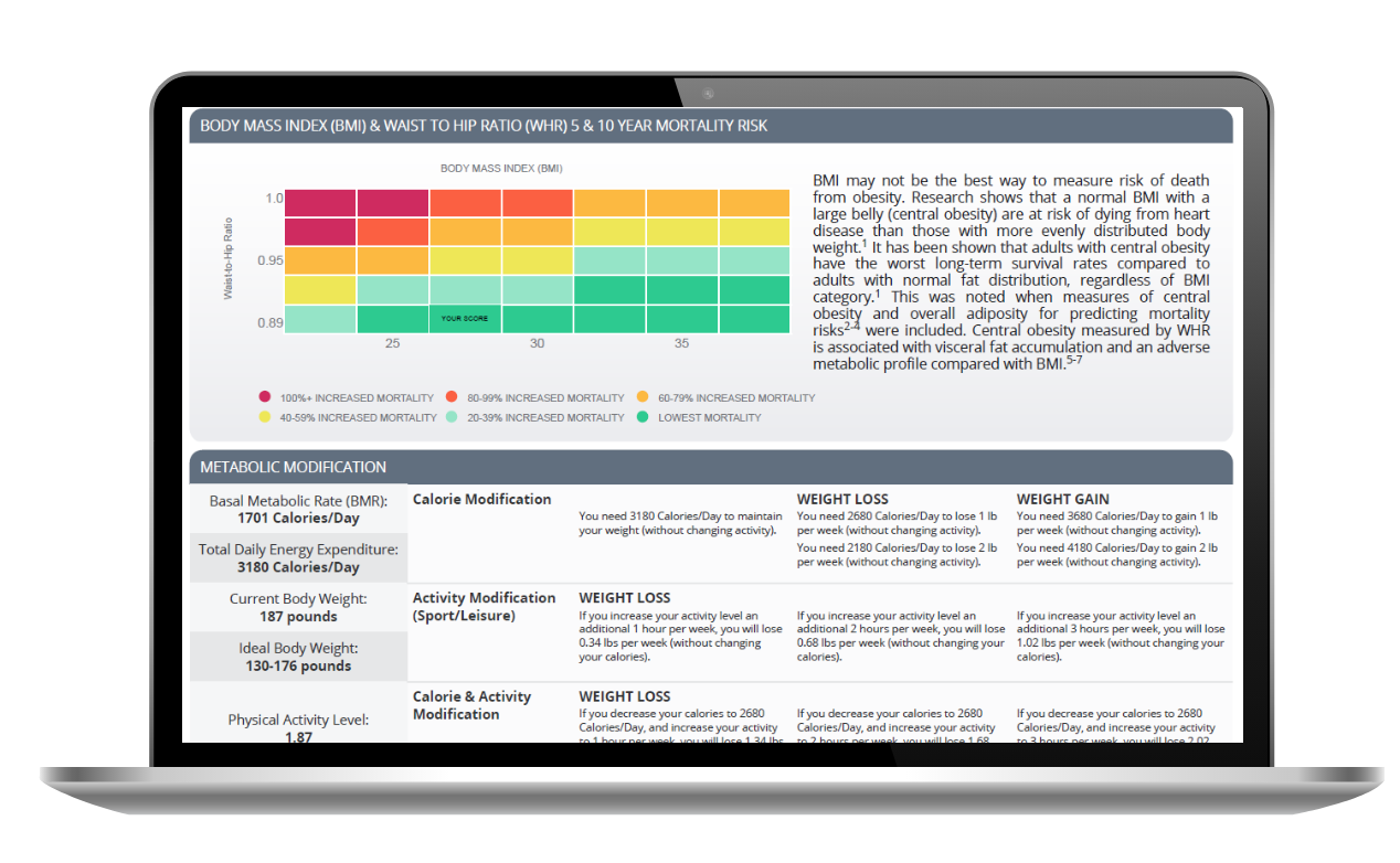 Our HRA software generates a detailed report that provides information regarding the individual’s: